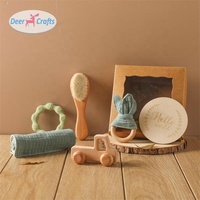 핑크 & 그린 아기 선물 세트 Teether 담요, 나무 장난감, 토끼 딸랑이 및 브러시 DK08390